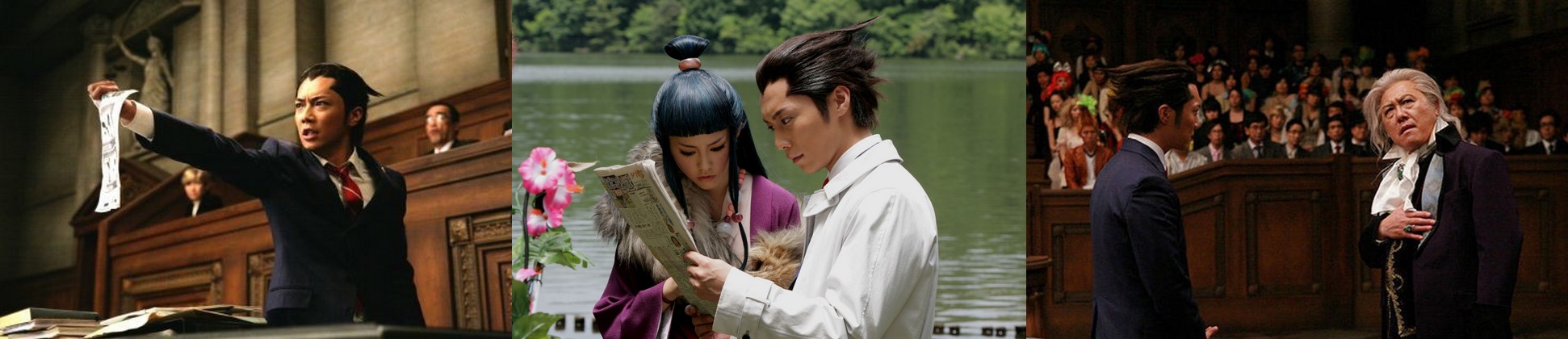 En 2012 sors le premier film live adapté de la série, sobrement intitulé « Ace Attorney ». Réalisé par le japonais Takeshi Miike (Ichi the Killer, Gozu, La mort en ligne…), le film reprends l’histoire du premier jeu, mais adapte seulement la seconde et quatrième affaire. Le film a connu un succès mitigé, certains le considèrent comme la meilleure adaptation de jeu vidéo au cinéma depuis longtemps, alors que d’autres critiquent le fait que le film soit lent et mou.