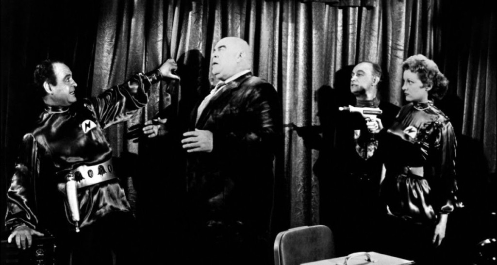 Bon, voilà le pitch. Balaise. Mais en réalité le film n’est pas si mauvais que les précédents ; les acteurs sont corrects, les effets spéciaux maîtrisés et une réalisation totalement revisitée… Nah j’déconne, ce film est incroyablement badassement ridicule. Là aussi, rien n’est correctement ficelé, sauf les assiettes soucoupes volantes, car oui, on distingue les fils. Le jeu des acteurs est bâclé à l’extrême, certains se cassent la gueule en plein milieu de leur scène, mais notre Woody n’aurait pas eu l’intention de couper, il ne pouvait quand même pas leur faire ça.